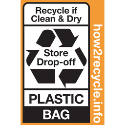 This logo is seen on plastic bags, films, and wraps that can be recycled in retail store bins with plastic bags but do not qualify to be recycled in curbside bins.