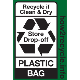 This logo is seen on plastic bags, films, and wraps that can be recycled in retail store bins with plastic bags but do not qualify to be recycled in curbside bins.