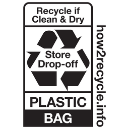 This logo is seen on plastic bags, films, and wraps that can be recycled in retail store bins with plastic bags but do not qualify to be recycled in curbside bins.