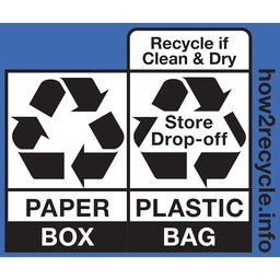 This logo is seen on plastic bags, films, and wraps that can be recycled in retail store bins with plastic bags but do not qualify to be recycled in curbside bins.