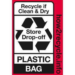 This logo is seen on plastic bags, films, and wraps that can be recycled in retail store bins with plastic bags but do not qualify to be recycled in curbside bins.